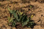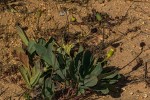 Perennial herb, up to 30 cm tall, growing from a creeping rhizome. Leaves mostly basal, sessile, somewhat fleshy, grey-green, narrowly obovate-elliptic, up to 5 cm long. Scapes 1-4 with single-headed terminal capitula. Involucre cylindrical, 11-14 mm long and c. 5.5 mm in diameter. Ray-florets absent. Disc florets yellow to orange, 7-11 mm long. Achenes c. 5 mm long, hairy, with a pappus 7-9 mm long. |